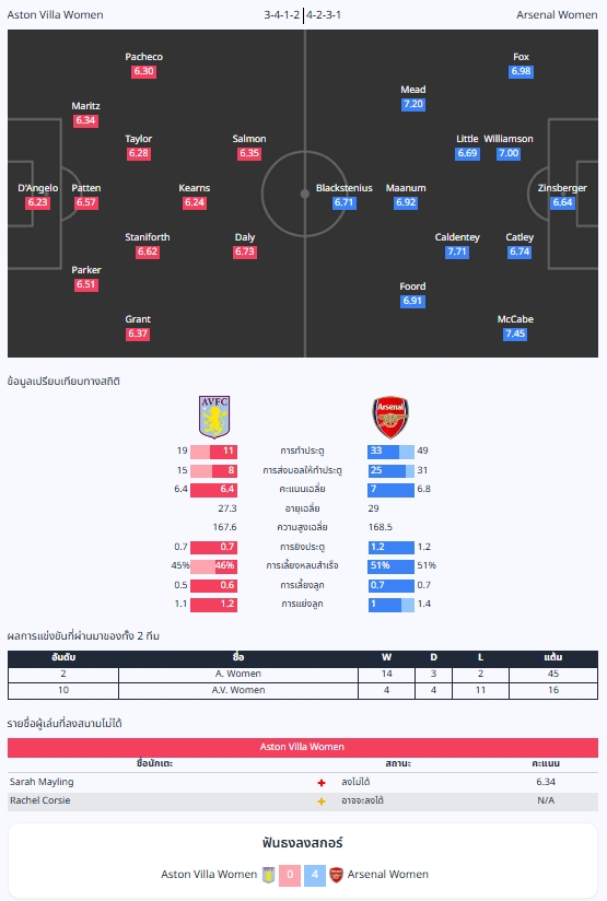วิเคราะห์บอล [ วีเมนส์ ซูเปอร์ลีก อังกฤษ 2024-25 ] แอสตัน วิลล่า (ญ) VS อาร์เซน่อล (ญ)